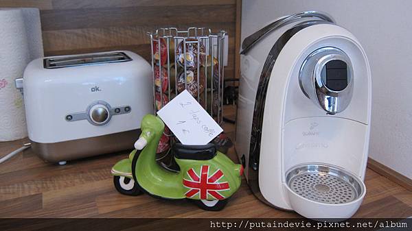 連咖啡機都有!不過不是免費的~兩杯一歐元請自己投