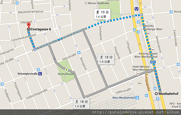 一直到Hutteldorfer StraBe再左轉,到Costagasse再右轉